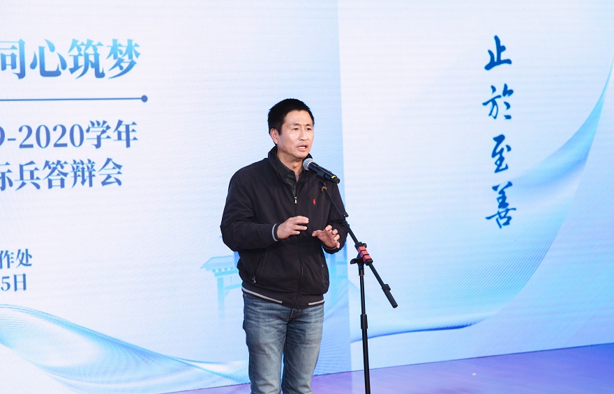 随后,戴月波对本次答辩会进行了总结点评。他首先充分肯定了参评班级的建设和成效,对各位班主任和同学们在班级建设过程中付出的努力表示由衷的感动与感谢。指出,班集体的建设是学生成长成才的重要载体,大学之道在于成人、成才,更在成群,同学间应团结一致,互帮互助,充分发扬科学精神和人文情怀,共同陪伴和成长。