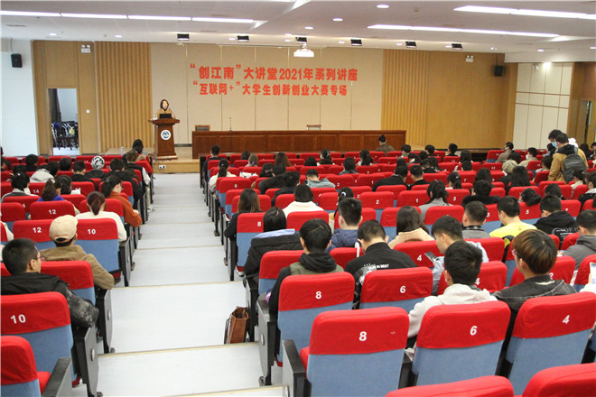 为进一步做好“互联网+”大学生创新创业大赛赛事宣传和参赛指导,3月17日下午,“创江南”大讲堂2021年系列讲座——“互联网+”大学生创新创业大赛专场培训会在图书馆三楼报告厅举办。本次活动由学生工作处创新创业服务科科长杨宏华和江南大学国家大学科技园总经理助理兼双创服务部主任张翼担任嘉宾,大赛校内选拔赛的参赛学生代表近300人到场参会。