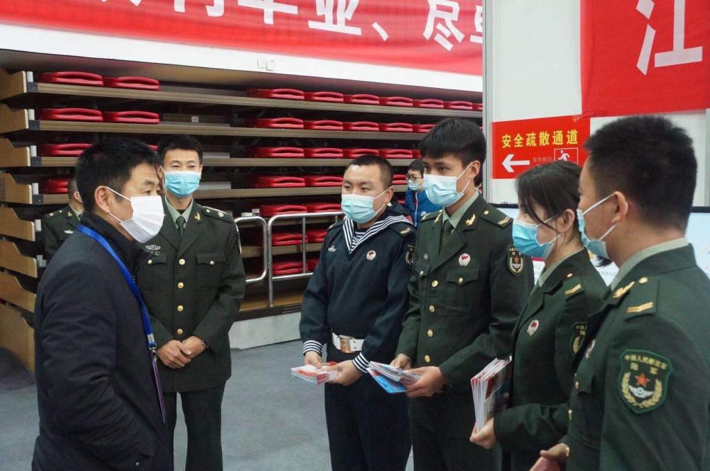 根据国家对大学生入伍的新政策,鼓励大学生积极参军入伍,不断提升兵源素质,为军队输送高素质人才,推动国防和军队现代化建设。3月20日上午,校人武部依托2021年毕业生春季大型招聘会在体育馆开展了国防教育和征兵宣传活动。校党委副书记戴月波及招就处副处长张捷英等领导莅临现场指导工作。