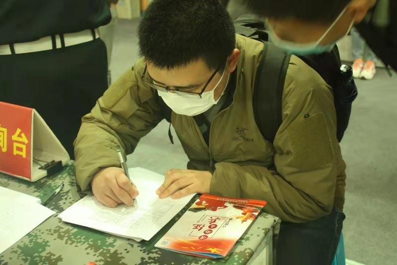 本次征兵宣传活动在体育馆设立展位,主要面向在校毕业生。通过悬挂横幅、设置咨询台、摆放立功受奖人员展板、宣传优秀退伍士兵事迹、发放征兵宣传手册、宣讲政策以及现场咨询等方式,积极调动同学们的参军热情。活动取得了热烈的反响,有二十余名毕业生和适龄研究生当场填写了报名表。