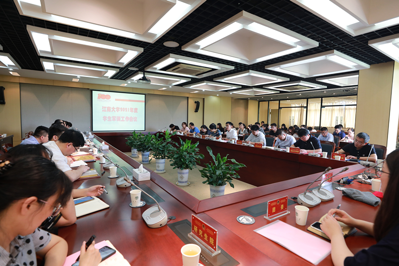 6月30日上午,江南大学2021年度学生军训工作会议在行政楼B307会议室召开。校党委副书记戴月波,校党委常委、宣传部部长倪松涛,校长办公室主任张梁,人民武装部部长张菁燕及校国防教育工作领导小组有关部门领导、各学院党委副书记、带训辅导员、军训办公室成员、军训工作先进集体代表、先进个人代表参加会议,会议由人民武装部副部长汪双喜主持。