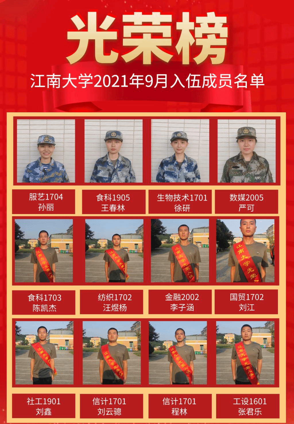 经过体格检查、政治考核等多轮的严格筛选,我校12名学子成功应征2021年秋季大学生征兵。九月初,应征学子走进无锡、南京预定新兵役前训练营,开展基础体能、条令学习、队列训练等内容的学习。因为疫情防控需要,全程采取封闭式训练,9月24日起,新兵直接起运奔赴祖国各地。党委人民武装部利用中秋慰问、电话致信等方式向12名同学圆梦军营表示祝贺,勉励他们发扬“笃学尚行,止于至善”的校训精神,不忘参军初心,勤学苦练掌握高超本领,牢记青春使命,不畏困阻书写绚烂篇章。