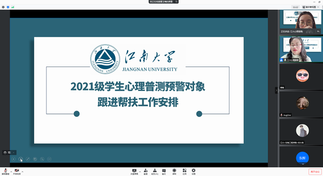 讲座后,学生工作部线上举行了新生心理普测专题会议。董霞通报了2021级学生心理测试总体情况,提出了心理测试预警学生帮扶工作的要求。童玉梅详细讲解了针对本科生预警学生和研究生预警学生的约谈流程,以及约谈的注意事项。会议简短而高效,促进了心理健康工作队伍专业知识和实践经验的交流,有利于掌握学生心理健康状况,有针对性地开展心理危机干预,形成全员育人工作格局。