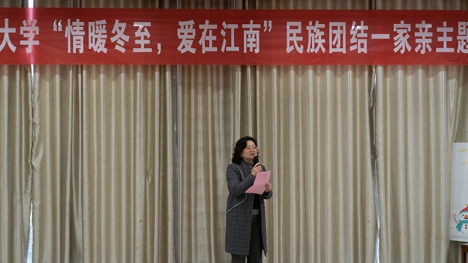 活动伊始,统战部副部长王冰老师致以节日的祝福,她强调,铸牢中华民族共同体意识是新时代民族工作的主线,是学校教育的工作重点,江南大学2021年在民族生工作中获取了耀眼的成绩,同时鼓励大家作为新时代青年,全面提高铸牢中华民族共同体意识的能力和水平,不忘初心、不负青春,争做中国特色社会主义建设者和接班人,为实现中华民族伟大复兴的中国梦贡献自己的力量!