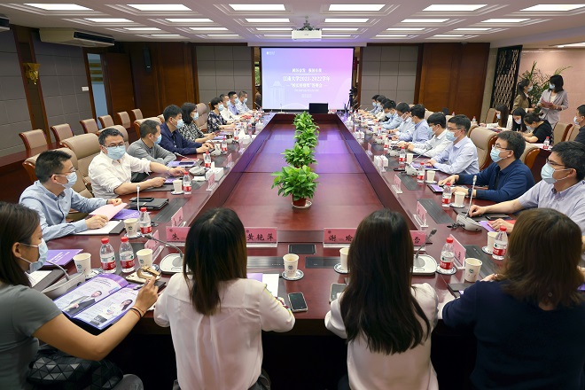 5月20日上午,江南大学2021-2022学年“校长特别奖”答辩会在行政楼B305举行。校党委常委、副校长张影陆携相关部门负责人及各学院教授代表、优秀班主任代表共计25人出席答辩会,并担任现场评委。答辩会由学生工作部部长张菁燕主持。
