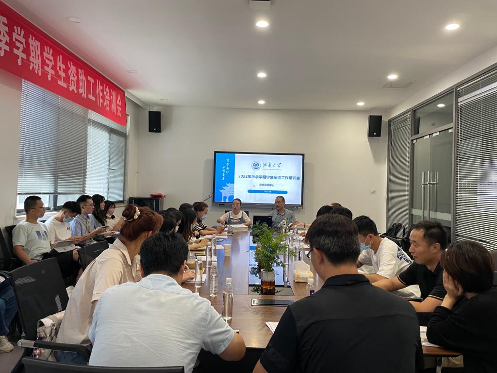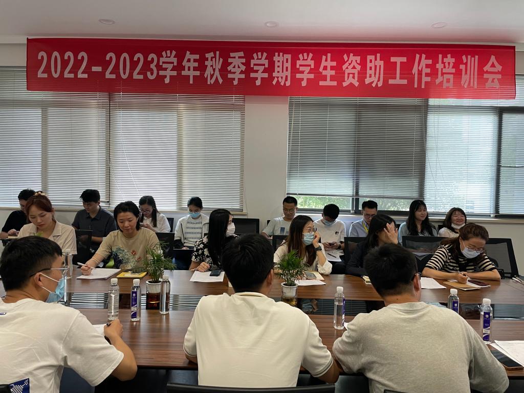 9月2日下午,我校学生资助中心在北活F111会议室召开了2022年秋季学期学生资助工作培训会,学生工作处副处长俞立峰,17个学院的资助辅导员和新生辅导员共计30余人出席了此次会议。学生资助中心汪洁和杨丹做工作培训交流。