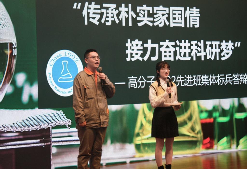 答辩伊始,15个候选班级代表依次上台,分别从党团建设、学科竞赛、志愿服务、公益行动、科研创新等多个方面进行了汇报展示。光科1902班以发光方程为班级成长模型,谱写班集体发光发热的青春篇章。环工1901班师生团结一心,用“山海之情”践行绿水青山就是金山银山的理念。食品1905班结合专业特色,将班级成员比作“小菌株”,聚合在一起孕育“大梦想”。整个展评精彩不断,高潮迭起,每个参评班级都充分展示了集体的思想凝聚力、组织感召力、学业奋进力、学风成效力、建设影响力,给在场师生留下深刻印象,赢得了阵阵掌声。