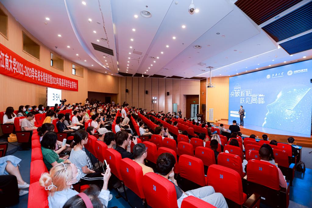 最后,倪松涛在总结讲话中对在校学生提出三点寄语:一是榜样示范,传承优秀,希望同学们见贤思齐,以榜样的力量砥砺前行;二是不忘初心,行稳致远,希望同学们走出校园后,保持昂扬的斗志,在更广阔的舞台上继续发光发彩;三是怀揣梦想,未来可期,希望全体毕业生为祖国建设和民族复兴投入青春力量,贡献江南智慧。