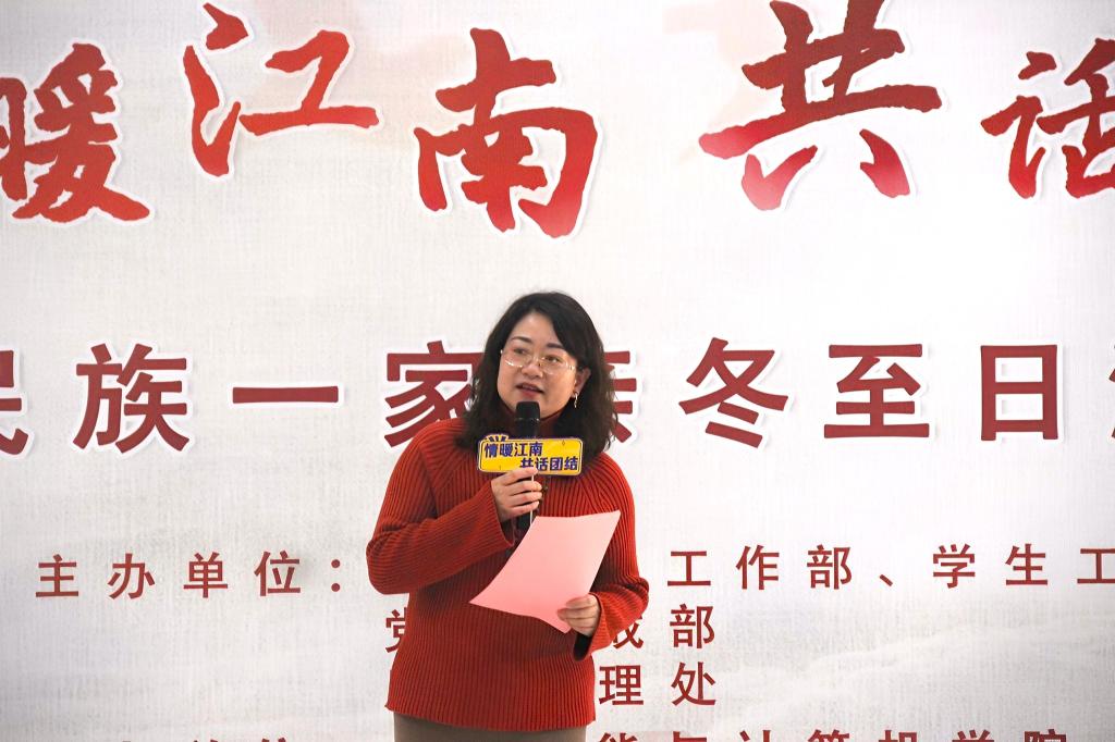 冬至大如年,江南话团圆。12月22日下午,江南大学100余名各民族师生齐聚二食堂二楼开展“情暖江南,共话团结”民族一家亲冬至日活动。江南大学党委学生工作部、学生工作处副部长蒋洁、党委统战部副部长王冰、党委保卫部副部长王宇灏、后勤管理处饮服中心主任张明亮、江南大学派驻老师巴依里克出席活动。各学院民族生管理辅导员、2023级本硕博新生代表参加活动。