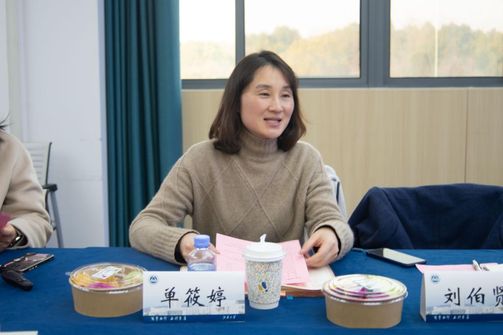 校就业指导中心主任单筱婷总结发言。她从大学生生涯规划的现实与困境为切入点,指出辅导员要在被动的社会环境中主动寻求机会,秉承初心做好生涯教育,在相关课程教学中让学生成长和发展,适配学生认知专业内涵,培养学生提升职业价值观、认同感和求职力,切实实现学生人职匹配、个人价值和社会价值相结合,为行业和国家培养高质量人才。