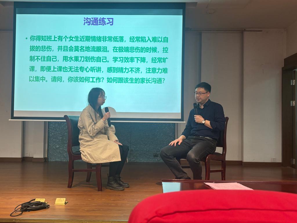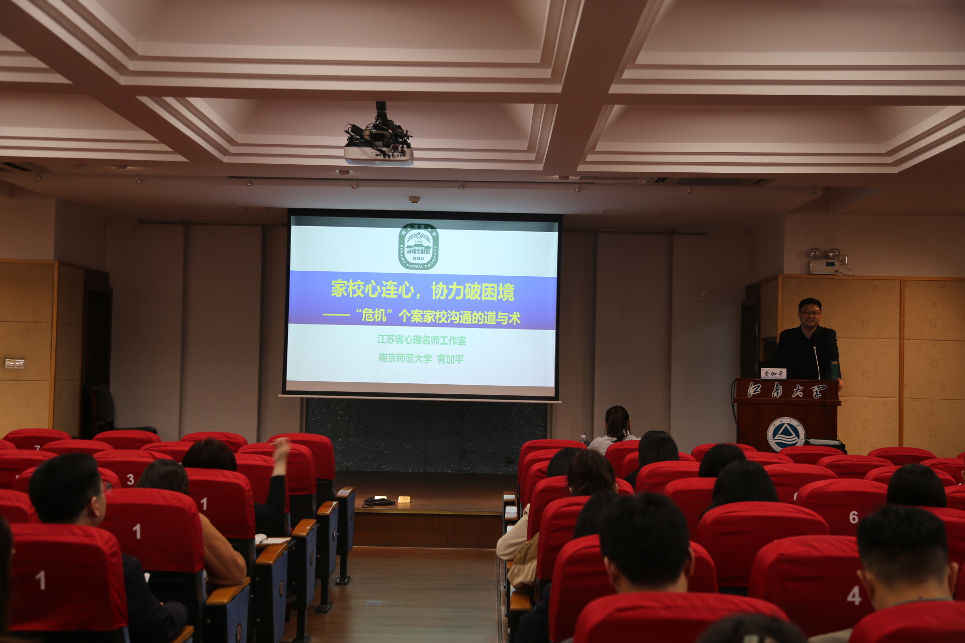 为进一步提高我校心理健康教育工作的专业化水平,促进家校合作,4月2日下午,学生工作处特邀南京师范大学曹加平副教授来校开展政工干部心理专题培训。各学院党委副书记、辅导员、班主任、相关职能部门老师等120余人参与了本次培训。