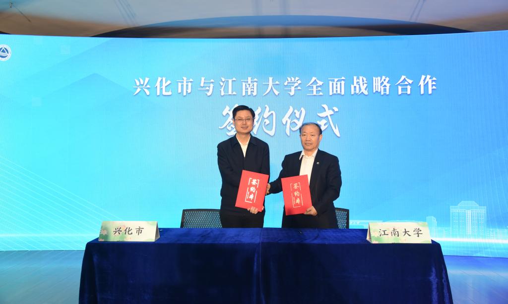 前期,江南大学与兴化市委、市政府进行了深入洽谈,将在科技攻关、成果转化、人才引育等方面开展紧密合作,活动现场双方共同签署全面战略合作协议。同时,现场还举行了泰州兴化(无锡)离岸创新中心合作基金、入驻项目签约仪式,兴化市相关食品企业与江南大学专家教授签约了6个产学研合作项目,聘请6位食品专业专家教授担任兴化市健康食品产业技术顾问,并聘请8位社会实践、就业负责老师为兴化市校园引才大使。