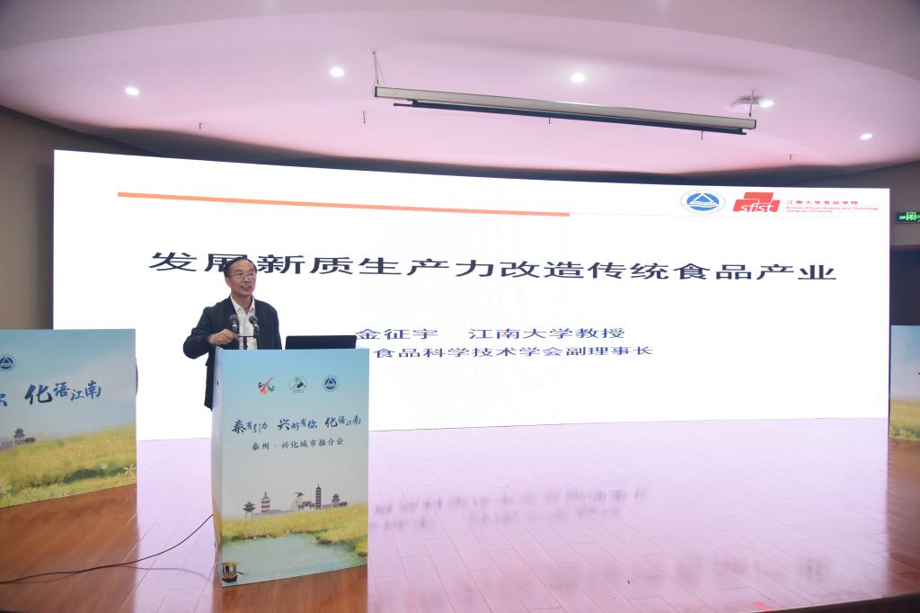 金征宇以“发展新质生产力 改造传统食品产业”为题作主旨报告。他谈到,我国人多地少,粮食生产将面临长期“紧平衡”,食品工业面临长期的资源供给挑战,要根据本地的资源禀赋、产业基础、科研条件等,有选择地推动新产业、新模式、新动能发展。为进一步助力泰州大健康产业发展,泰州市现场聘请金征宇担任泰州市大健康产业发展顾问。
