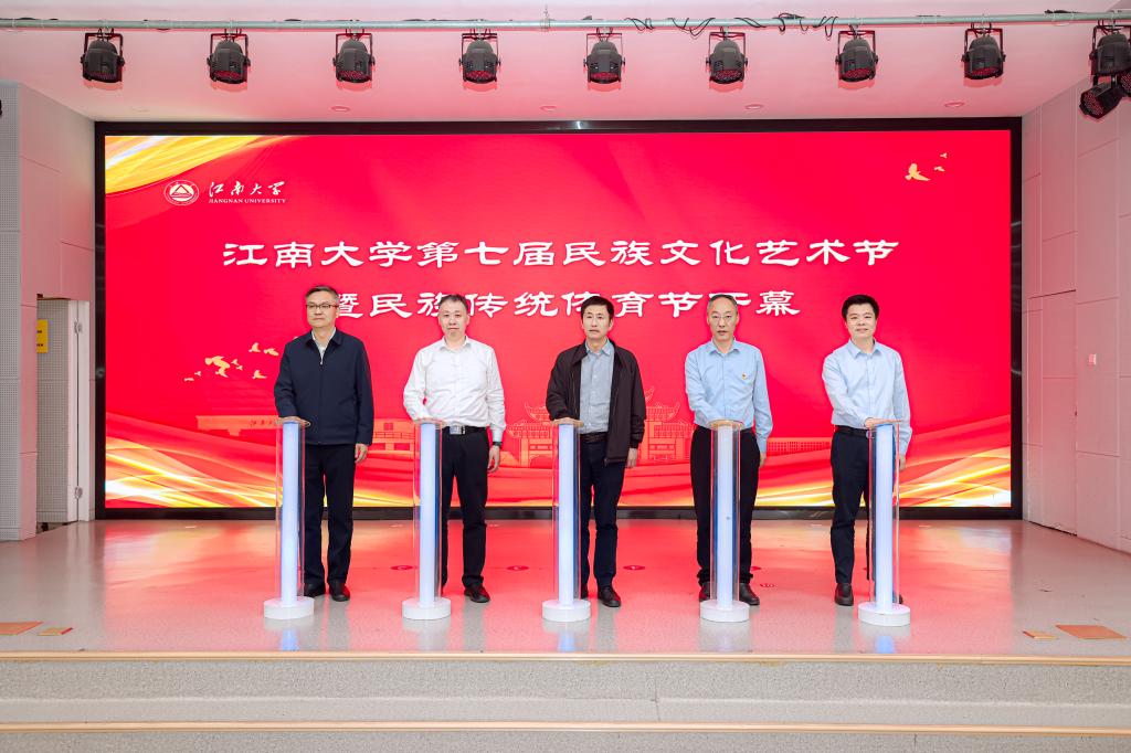 5月15日,由江南大学、无锡市民族宗教事务局、无锡市滨湖区统战部主办,无锡市滨湖区民族宗教事务局、无锡太湖山水城旅游度假区、无锡灵山文化旅游集团协办的江南大学第七届民族文化艺术节暨民族传统体育节在北区大学生活动中心开幕。江南大学党委副书记戴月波,无锡市委统战部副部长、市民宗局局长李晓,校党委常委、统战部部长朱飞,无锡市滨湖区委常委、统战部部长陈虎,无锡太湖山水城旅游度假区党群工作部部长鄢和平,无锡灵山文化旅游集团党委书记、董事长华晓宁,学校党委宣传部部长李佳敏、党委学生工作部部长周伟涛、团委书记魏珍吉、体育部党总支书记周建中等相关职能部门领导出席启动仪式。