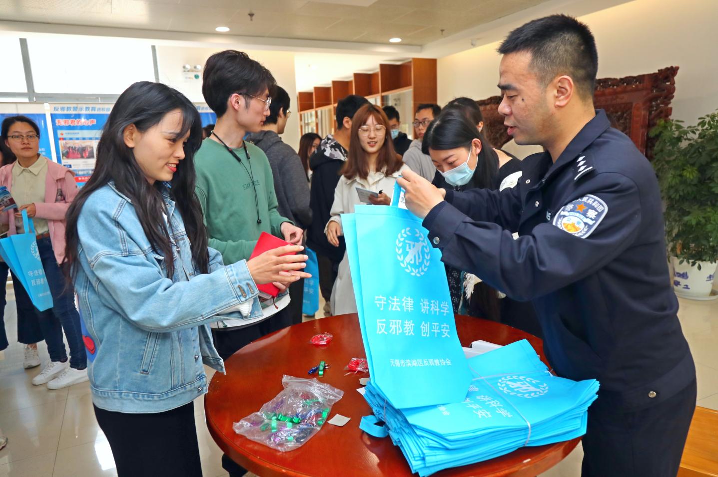 此次反邪教警示教育宣传活动通过悬挂主题鲜明的宣传横幅、摆放内容丰富的宣传展板、发放宣传册和精美的纪念品等形式营造校园反邪教的浓厚氛围。活动现场,学校邀请滨湖区公安局反恐大队民警向在场师生讲解邪教的危害,揭露邪教本质,进一步加深了师生对邪教危害的认识,提升了广大师生识别和抵御邪教的意识和能力。