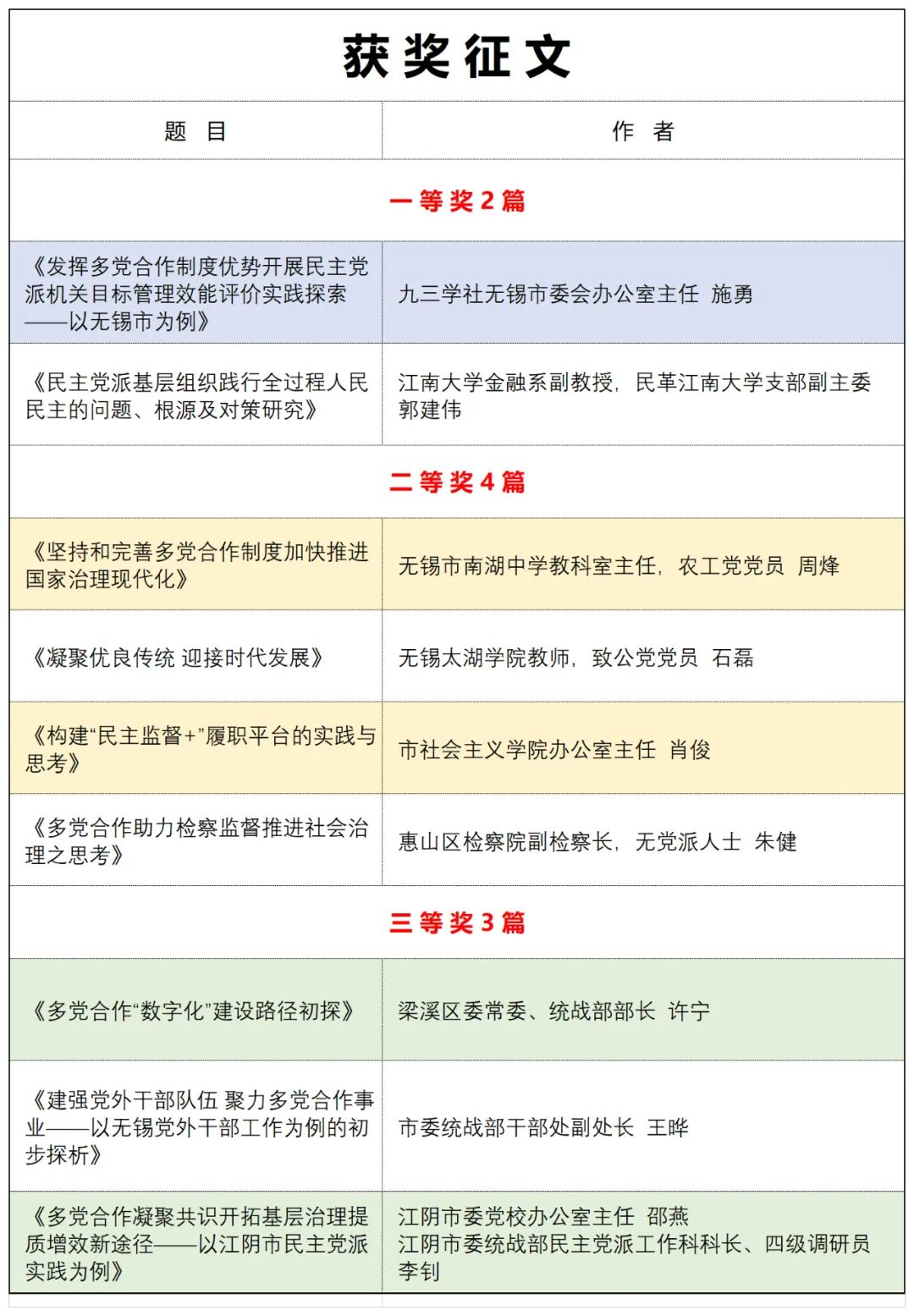 无锡市选送征文获奖情况