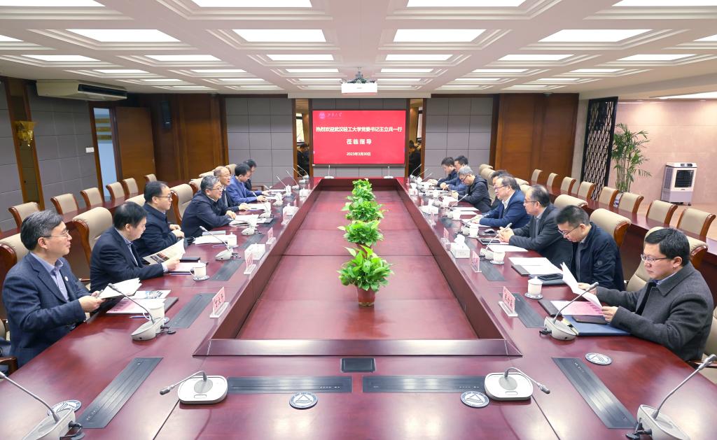 3月30日上午,武汉轻工大学党委书记王立兵一行来我校调研交流。校党委书记朱庆葆,校长助理张光生,党委办公室、校长办公室、发展规划与学科建设处、科学技术研究院、社会合作与校友联络处、食品学院等主要负责人参加座谈交流。会议由党委办公室主任王维主持。