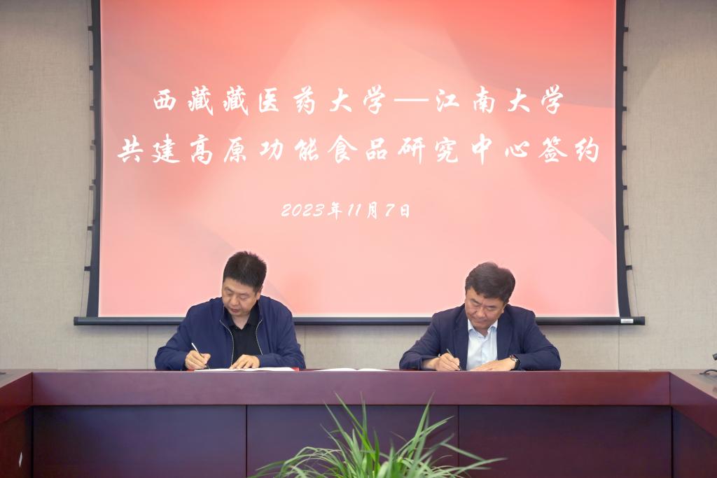 座谈会上,倪松涛、于广琮代表两校签署《西藏藏医药大学—江南大学共建高原功能食品研究中心合作协议》,进一步助推高原功能食品研究高质量发展。双方就一站式学生社区、学生第二课堂和附属医院发展等方面进行了深入交流。