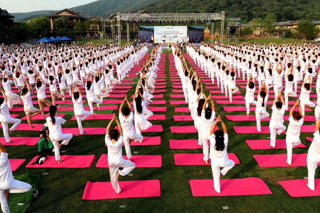 6月14日下午,“2019中国(无锡)国际瑜伽节”在禅意小镇拈花湾盛大开幕。本次盛会由中国国际商会无锡商会、无锡市体育总会、无锡市滨湖区人民对外友好协会等共同主办,包括开幕式、千人瑜伽盛典、全国瑜伽大赛、瑜伽精品课等多项丰富多彩的活动,前后吸引了近万人的参与和关注。我校教职工瑜伽协会亦受邀参加瑜伽节开幕式表演。在校瑜伽协会会长殷宝良、校工会副主席刘玉敏的带领下,由我校47名教师瑜伽爱好者组成的江南大学教职工瑜伽代表团参加了本次活动。