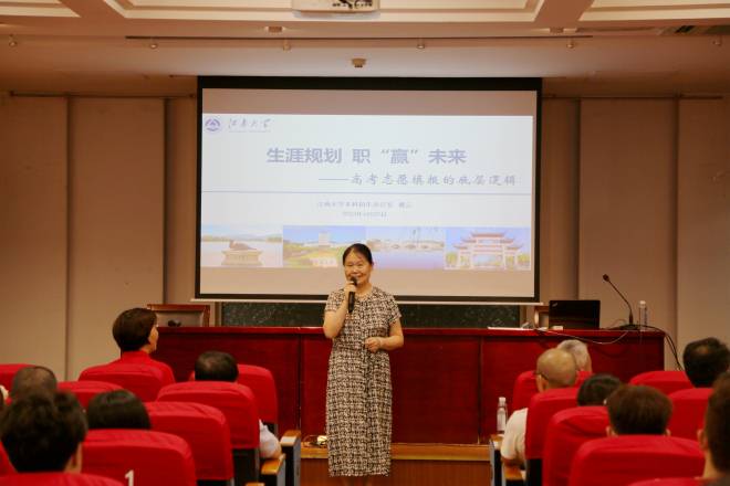 戴云作《生涯规划 职‘赢’未来——高考志愿填报的底层逻辑》讲座,从形势要求、生涯规划、生涯决策、生涯行动四个方面详细解读了新高考改革背景、填报志愿的底层逻辑、招生录取政策、流程、注意事项等内容,强调在填报时应充分考虑学生的兴趣和综合素质等因素,利用决策平衡单、平衡轮等生涯决策工具,结合所报考的城市、大学综合情况、专业前景等,制定适合的院校及专业选择策略,帮助学生实现人生理想。现场咨询环节,招生办公室的老师们就志愿填报中遇到的各种问题进行了耐心细致地解答,并为参会教职工如何科学合理填报志愿提供建议。