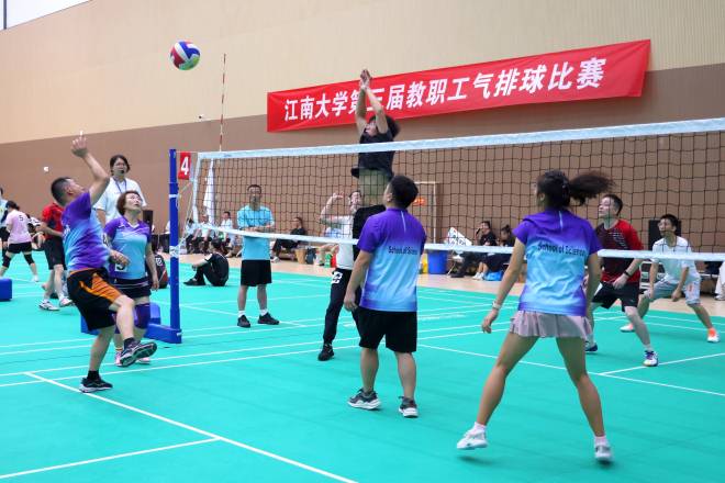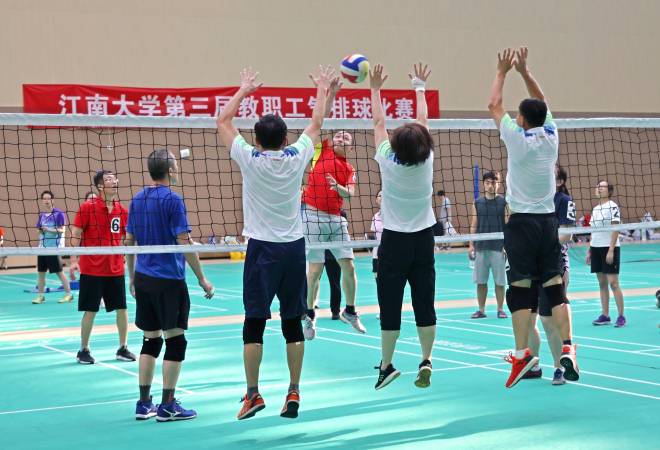 为丰富教职工文化体育生活,营造健康向上和谐文明的校园文化氛围,9月16日,由校工会、体育部联合主办,校教职工气排球协会承办的2023年江南大学第三届教职工气排球比赛在校训练馆举行。开幕式上,校工会副主席张才兴致开幕辞,体育部主任秦永和、校气排球协会会长杨严俊等出席开幕式,校工会副主席李红主持开幕式。来自全校22支代表队200多名运动员参加了比赛。