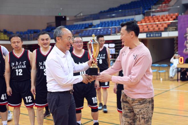 11月1日晚,江南大学首届教职工篮球全明星赛在校体育馆精彩上演。江南大学党委常委、统战部部长、工会主席朱飞,体育部党总支书记周建中,校工会副主席张才兴等出席活动。校教职工篮球协会会长卢雨正主持比赛。
