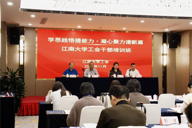 为深入学习贯彻习近平新时代中国特色社会主义思想,全面贯彻党的二十大精神,深刻领会习近平总书记关于工人阶级和工会工作的重要论述,进一步提升工会干部的理论水平和业务能力,推动工会工作高质量发展,11月2日至4日,校工会举办“学思践悟提能力·凝心聚力谱新篇”工会干部培训班。校党委常委、统战部部长、工会主席朱飞出席,校工会常委会委员、校工会经审委委员、各分工会主席、副主席等专兼职工会干部参加了培训。