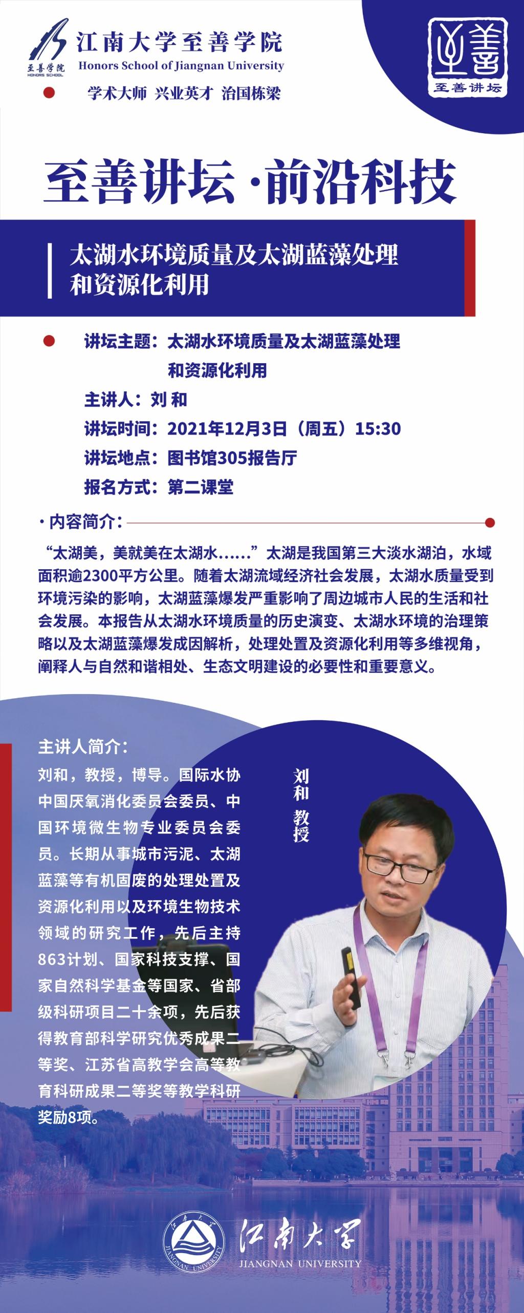 讲坛主题:太湖水环境质量及太湖蓝藻处理和资源化利用