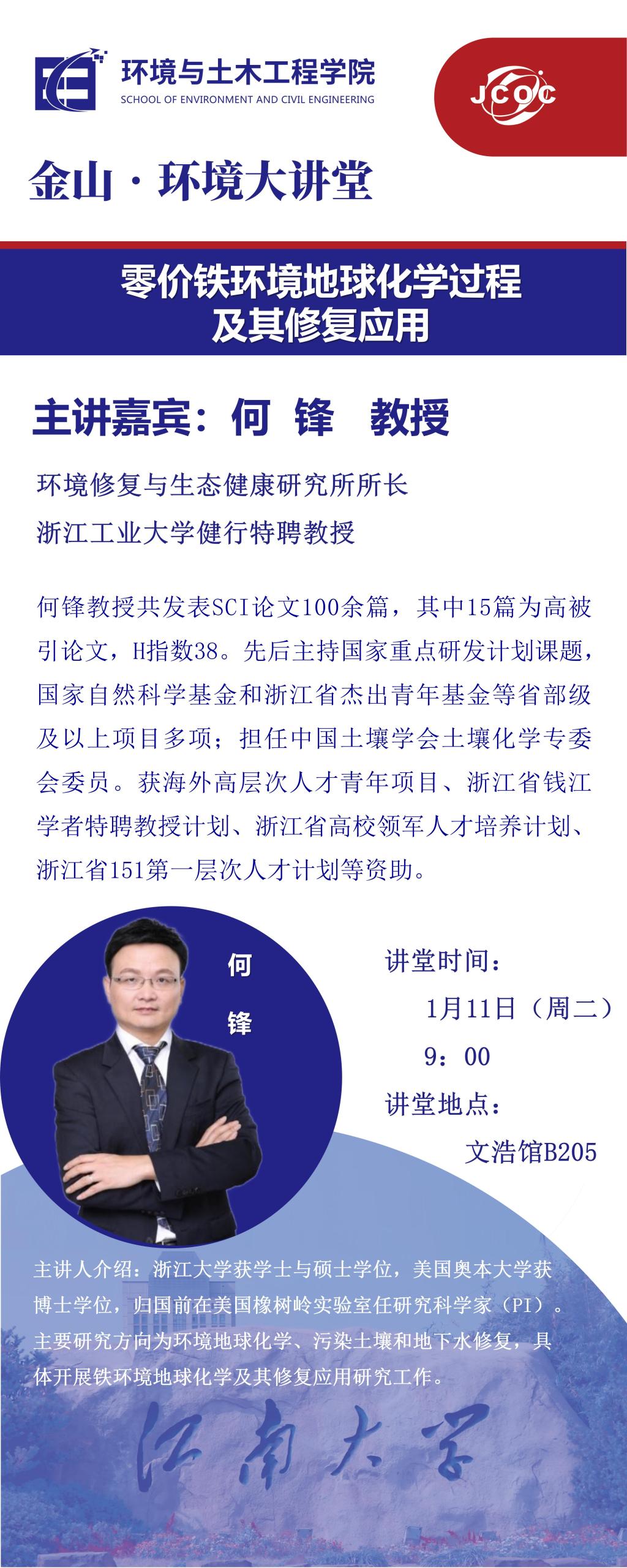 地点 文浩馆B205 短标题 金山·环境大讲堂--何锋:零价铁环境地球化学过程及其修复应用