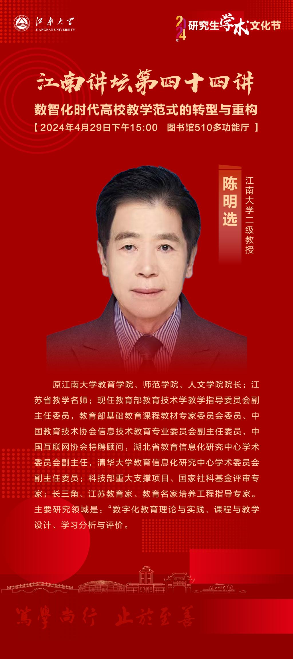 为赋能导师发展,推动研究生导师队伍建设,促进研究生导学关系和谐氛围营造,特举办2024年“导学关系建设月”之江南讲坛专场报告会,诚邀各位老师和同学参加!