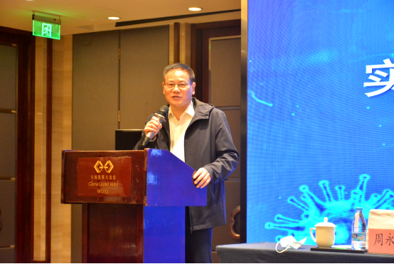 王周平致欢迎辞,他对参会领导、专家和代表示热烈的欢迎,感谢各位专家学者一直以来对无锡实验动物事业的大力支持和关心帮助,希望通过本次学术交流能促进江南大学、无锡市实验动物协会与全国高校、科研院所、企业的合作交流,共同促进实验动物学科的发展。
