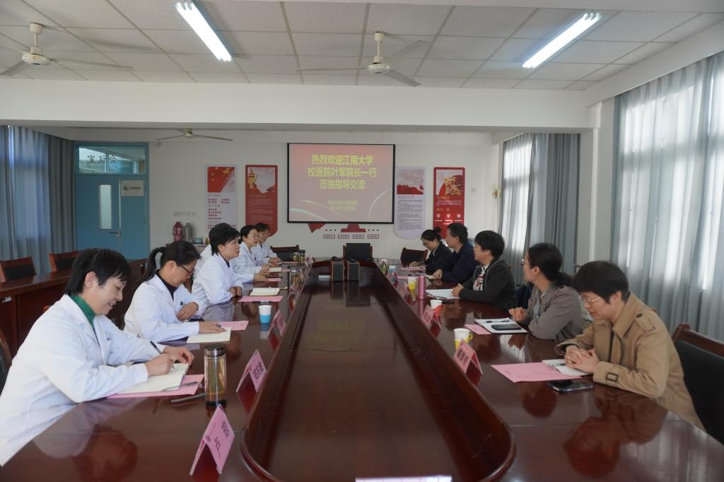 10月18日下午,南京大学校医院院长唐少秋对我校一行调研交流表示欢迎,她表示,江南大学校医院作为推进大学生医保的先行者,在江苏省高校校医院大学生医保工作中起到重要影响作用,具有丰富的经验值得学习借鉴,随后她介绍了医院的基本情况,并从四校区配备、信息化建设、师生健康管理、大学生医保等方面进行详细阐述;同时就与江南大学医院未来的长期深入交流提出了美好愿景。叶军表示江南大学与南京大学长期以来保持着良好密切的合作关系,期盼今后两院继续加强在医疗技术、人才培养、科研教学的交流,推进医院工作共同发展。会后,我校一行人在唐少秋的带领下,参观了南京大学校医院门诊、预防保健科、医技科、信息化机房等科室,南京大学校医院信息科负责人吴翔、防保科负责人柳蕊分别对医院的信息化、医疗、体检工作情况进行了具体介绍,双方就信息化建设、医疗技术等方面进行了深入的沟通。