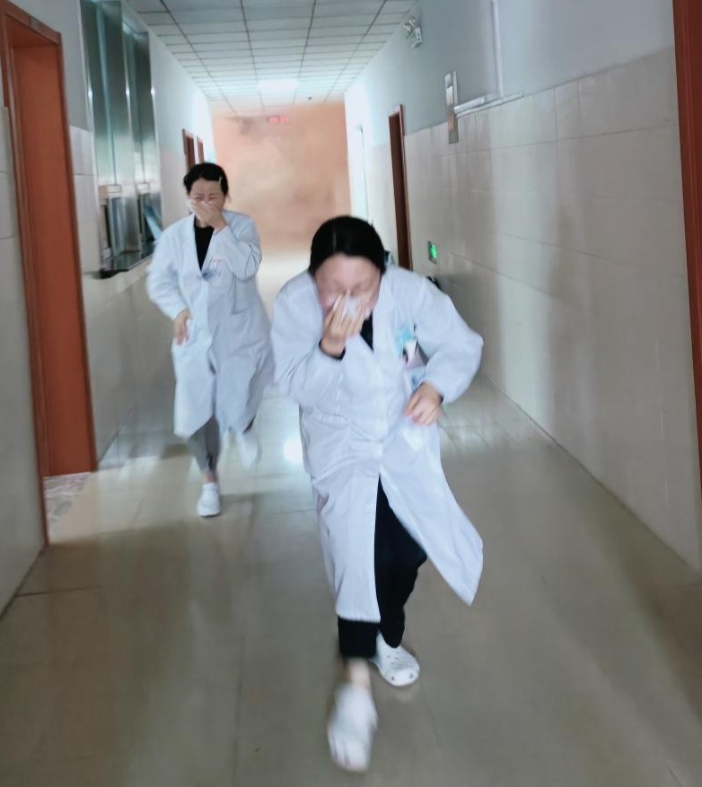 校医院开展消防疏散演习现场