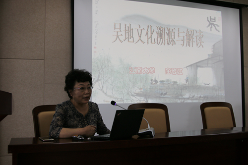 庄教授古韵今风,旁征博引的讲解了吴文化的溯源,并对吴文化的文脉在其内涵与表现特征上作了广泛的分析与提炼,凸现了吴地文化完整的雏形,并将吴文化与和谐社会建设相结合,展现出吴文化的多元性与开放性风采,更加突出了吴文化的尚德、务实、和谐的精神内涵。庄教授独到的见解及生动形象的讲解受到了大家的一致好评,会后大家一致表示感悟颇多,意犹未尽。