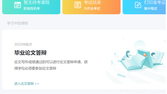各校外学习中心、同学: 202207届本科生毕业论文(设计)答辩工作即将开展,由于疫情防控形势依然严峻,为避免人群聚集,本次答辩仍采用远程答辩形式。具体通知如下: 1、初评成绩将于4月27日前在平台发布,各校外学习中心登录学习中心管理平台、学生登录学生学习平台查询毕业论文(设计)初评成绩。 2、本科生根据《江南大学网络教育毕业论文(设计)写作规定》中“毕业论文(设计)成绩评定”要求决定是否申请答辩。 3、答辩申请方式:1、向所属校外学习中心提出申请,由各校外学习中心统一在管理平台提交答辩学生名单。2、学生自行在平台申请,进入毕业论文答辩模块(如图1所示),点击“提交答辩申请”即可(如图2所示),申请成功(如图3所示)。在申请时间段内也可撤销答辩申请。 4、答辩申请时间为:2022年4月27日至5月4日。 5、答辩可能会占用工作日,具体时间另行通知,请同学们提前做好安排。届时携带好身份证,在规定时间至所属校外学习中心进行答辩,逾期不予补答辩。 6、各校外学习中心应做好疫情防控,组织好答辩工作。 特别提醒: 1、本科毕业论文(设计)的成绩由初评和答辩两部分成绩组成。 2、通过且可申请答辩的学生,如未答辩,则视其放弃答辩机会,论文综评成绩记“及格”。 图1: