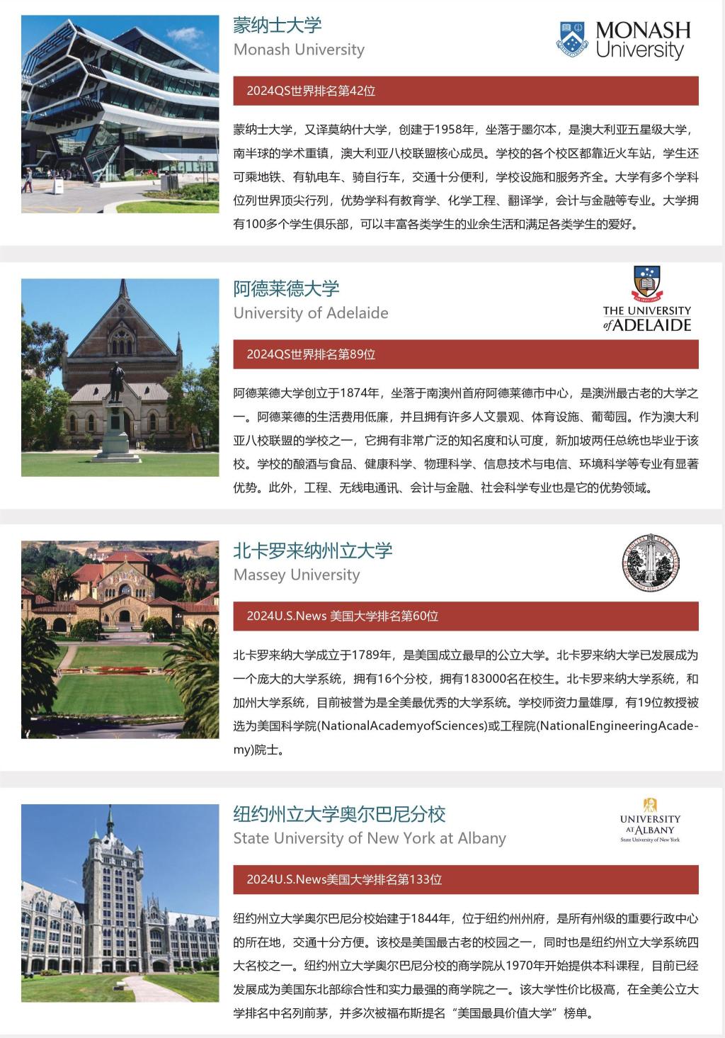 国际项目、预科项目与美国、英国、澳大利亚、加拿大、新西兰、新加坡、马来西亚等十几个国家近数百所名校实现学分豁免。学生达到不同国外院校申请条件可获得不同程度学分豁免。学生国内两年课程考核通过,可豁免国内所学课程的学分,直接进入国外顶尖名校完成剩余的本科课程。