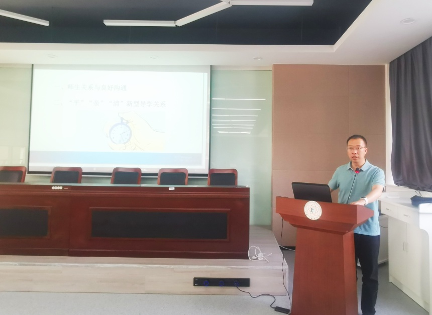 会议伊始,全体导师一同观看了华东理工大学“润泽心灵知心护航”系列微课之 “师生关系与良好沟通”微课程,并学习和交流了“平”“亲”“清”导学关系理念。席曦强调,在研究生教育中,导师与研究生的关系绝不仅仅是知识传授的关系,更肩负着以德立身、以德立学、以德施教的重任。构建师生民主平等、理解尊重、关系融洽的良性互动导学关系,是加强研究生培养和教育的基本要求。他希望导师们建立良好的“平”“亲”“清”导学关系,既要 “平”——从心理上和行动上尊重学生、信任学生,彼此尊重,相互理解,保持权威性与平等性之间的平衡;又要“亲”——亲近学生、关心学生、支持帮助学生,构建“亦师亦友”的导学关系;还要“清”——保持距离,不越线越权,保持师生关系纯洁,维持公道正派,以良好的思想品德和人格魅力影响和鼓舞研究生,铸魂育人。