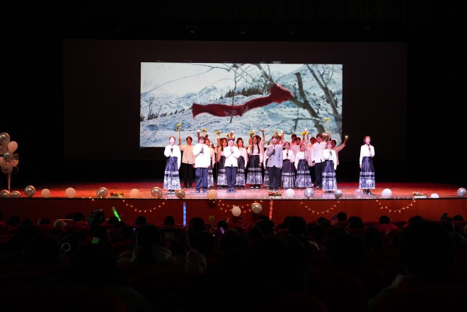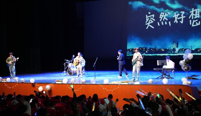 第三篇章为“圆梦”。一曲古风歌曲《囍·十年人间》开场,舞者的舞步优美典雅,唢呐的声音昂扬激越,大家沉浸在一个梦幻的仙境中,仿佛刚刚经历了一场千年之旅。信计2301班的同学们带来的配音+演唱《这世界那么多人》,他们拿出手机,打开闪光灯挥起手臂,与台下的观众们呼应形成璀璨的星海,令人不禁深深动容。六芒星乐队带来的歌曲演奏《突然好想你》,以稳健的台风,活泼的演绎,意想不到的彩蛋,用音乐传递着理学人的自信和从容,为晚会划上了圆满的句号。