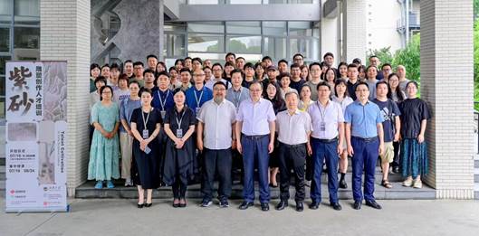 7月16日,“江南大学弘陶馆开馆暨江南大学中国紫砂艺术设计研究院学术委员会与理事会成立、江南大学中国紫砂艺术设计研究院客座教授和兼职硕士生导师授聘”仪式在江南大学东氿校区举行。江南大学党委书记朱庆葆,中国工程院院士、江南大学校长陈卫,中国工程院院士、江南大学未来食品中心首席科学家陈坚,无锡市文联党组书记、主席杨建,宜兴市副市长张达志,江南大学党委副书记戴月波,中国陶瓷工业协会副理事长、宜兴市陶瓷行业协会会长史俊棠及其家人,宜兴市丁蜀镇人民政府镇长伍震球,中国工艺美术大师毛国强、顾绍培,清华大学美术学院副院长、《装饰》杂志主编方晓风,东南大学教授胡平,中国工艺美术学会理论专业委员会副主任、中国美术学院教授吴光荣,宜兴市陶瓷行业协会党支部书记郑春和,研究院授聘的部分客座教授和兼职硕士生导师、研究院理事会成员,宜兴紫砂协会、江南大学校办、发规处、东氿校区管理办公室有关领导、设计学院党政班子全体成员、研究院各方向师生,以及参加国家艺术基金《紫砂雕塑创作人才培训》的50位学员等共同出席活动。