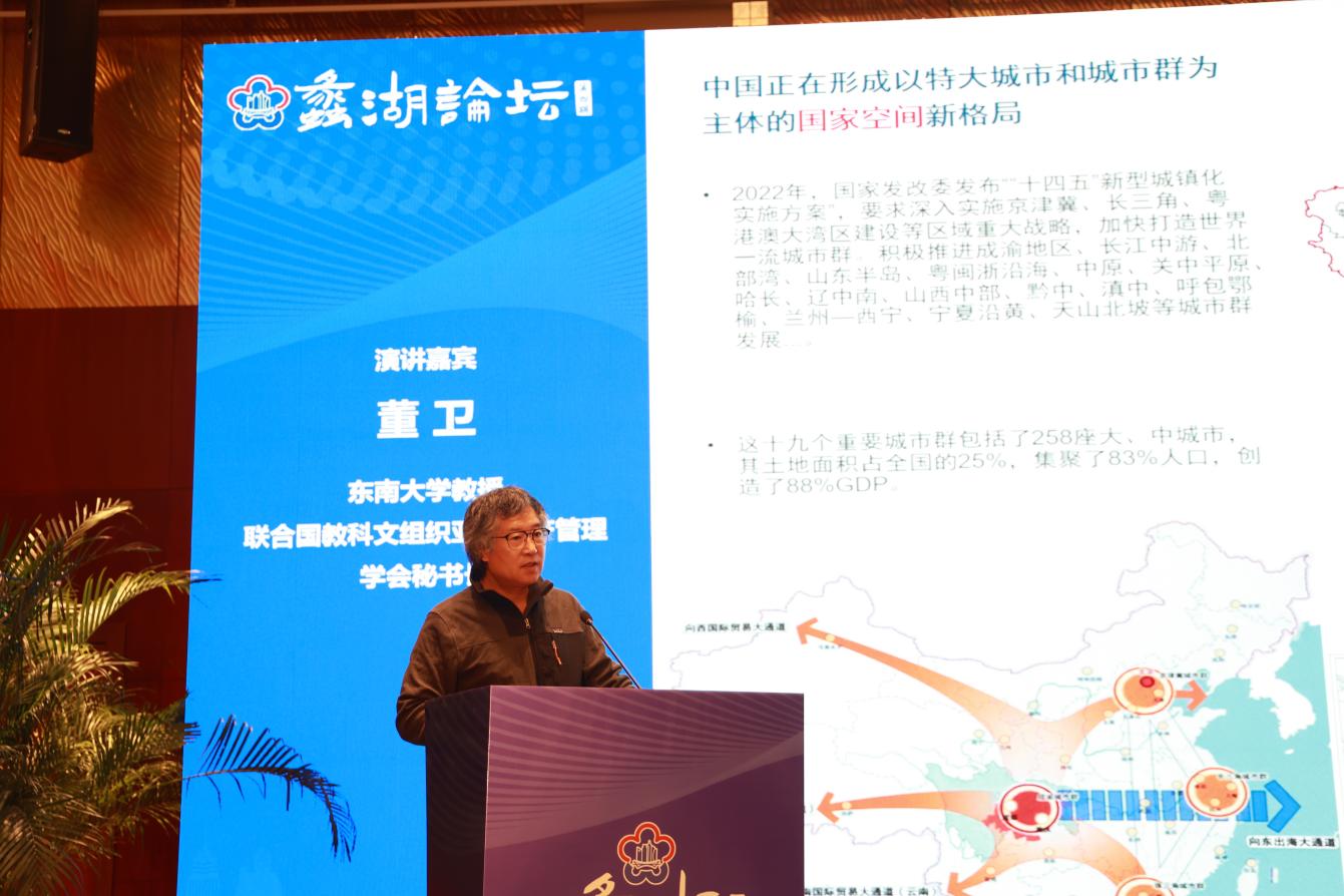 东南大学教授、联合国教科文组织亚洲遗产管理学会秘书长董卫就《从名城到国家历史文化空间》展开“城市文化涵养城市文明”的专题分享。他提出可通过深挖城市群发展历史,将无锡城市文化发展放在“苏锡常都市圈”结构体系中进行研究,例举比较了关中-中原城市群历史文化空间大结构,指出文化空间是具有鲜明地域特色、反映国家历史演进发展重要阶段的空间系统,强调聚焦江苏地区,构建江苏多元名城集群模块,创新名城保护发展路径,以期强化城市之间的历史文化关联性,共同讲好中国故事。