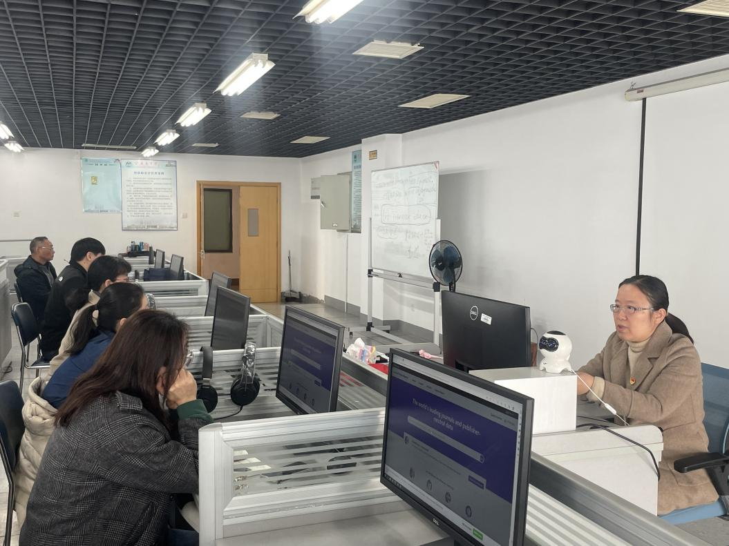 在“党建协同促发展”第一部分,图书馆信息服务支部张娣老师作了题为《图书馆资源与服务助力大文科建设》专题培训。她从解读每月报表、常用评价体系和数据库检索与利用、其他类型数据库及网站介绍等方面,为大家详细介绍了常用评价体系和数据库检索与利用的方法并分享了相应的技巧,对国家新闻出版署、国家版本数据中心、泛研全球科研项目数据库、学科服务平台等数据库和平台的使用进行了辅导,对科研秘书在工作中的常见问题进行答疑解惑。