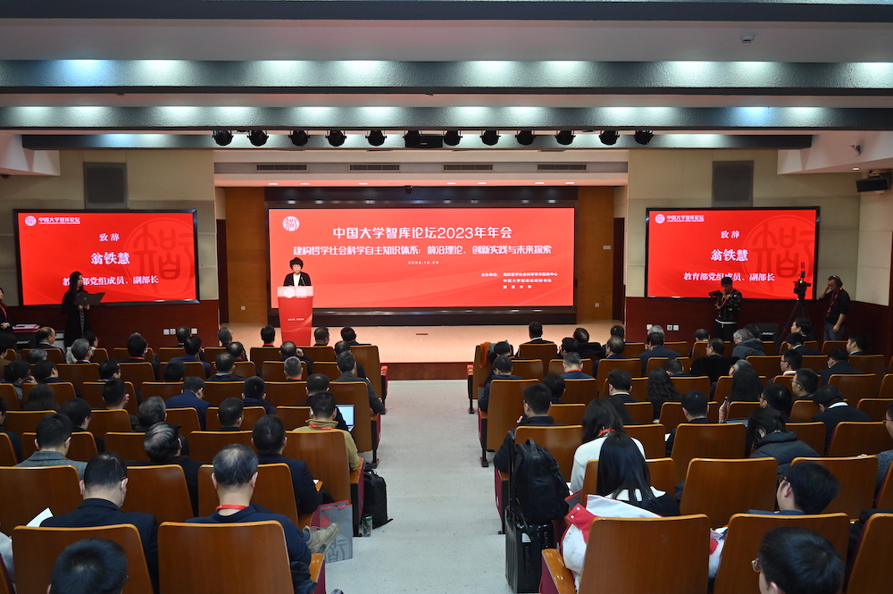 本次年会以“建构哲学社会科学自主知识体系:前沿理论、创新实践与未来探索”为主题,来自全国70多所高校150多家机构的近300位专家以及30余家机构参加论坛,为哲学社会科学自主知识体系建构建言献策。教育部党组成员、副部长翁铁慧出席全体大会并致辞,随后为高校哲学社会科学自主知识体系建设战略咨询委员会委员颁发了聘书。