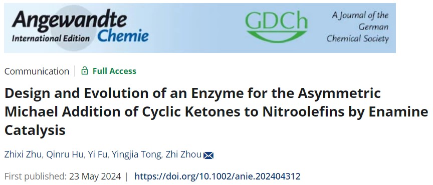 近期,我校生命科学与健康工程学院周志教授课题组在新型人工酶设计与创制方面取得了重要进展,研究成果“Design and Evolution of an Enzyme for the Asymmetric Michael Addition of Cyclic Ketones to Nitroolefins by Enamine Catalysis”正式发表于国际化学顶刊《Angewandte Chemie International Edition》(IF=16.1)。论文第一作者为江南大学生命科学与健康工程学院22级博士研究生朱致熹,通讯作者为江南大学生命科学与...