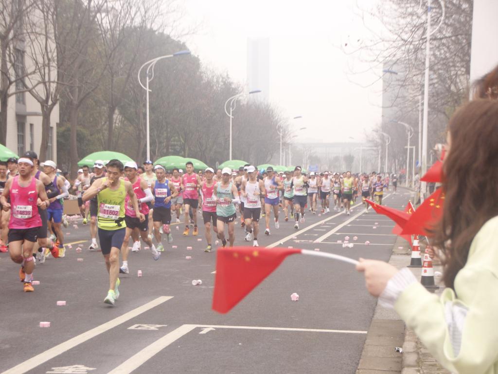 8时28分,名列前茅的精英组运动员率先通过观赛区域,同学们热情高涨,挥舞红旗,奋力呼喊,击掌鼓励。随后,大批运动员不断经过,同学们激情洋溢,拼力呼喊,此起彼伏的加油声,肆意舞动的红旗,不仅展现着运动员在春日阳光下长时运动的坚持,也展现着同学们彼此之间互相支持的和谐璀璨的友谊。汗水代表不轻言弃,呼喊彰显互助之谊。无论是意气风发的运动员,亦或是坚守岗位的志愿者,还是热情洋溢的观赛者,运动的意义在此刻绽放出绚丽之光。