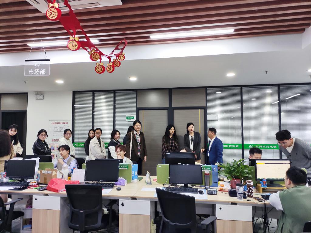 随后,师生一行实地参观了企业部门和药房门店,深入了解公司的运营模式、主业布局和产品服务等情况。通过走访交流,同学们深刻认识到医药产业前景广阔、医药行业大有可为,坚定了立足专业就业的信心和底气。