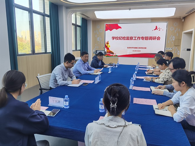 为深入推进全面从严治党向基层延伸,强化对基层党组织全面从严治党日 常监督工作情况的了解掌握,11月2日,校党委副书记、纪委书记刘淼、校纪委监督监察室主任董霆一行赴生命科学与健康工程学院,在306会议室开展了纪检监察工作专项调研。会议由学院党委纪检委员、副院长李会主持,学院各教工党支部和学生党支部纪检委员参会。