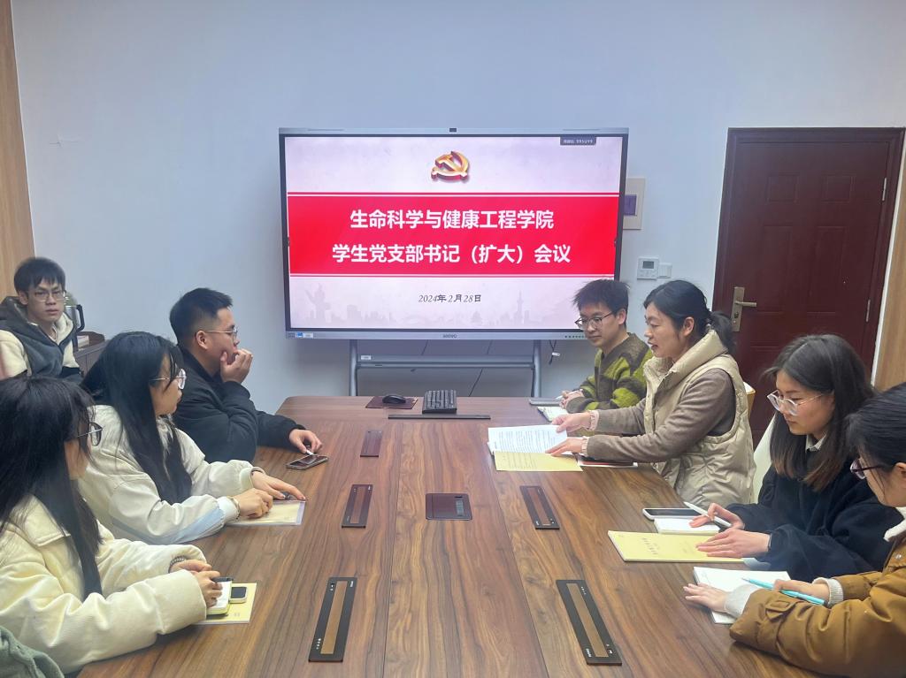 为进一步加强基层党组织建设,明确新学期党支部工作要点,切实推动学生党建工作高质量发展,生命科学与健康工程学院于2月28日下午在学院305会议室召开新学期学生党支部书记(扩大)会议。学院党委副书记兼副院长蒋艳、党建辅导员张世祺、各学生党支部支书支委、学生党务中心部门负责人参加此次会议。