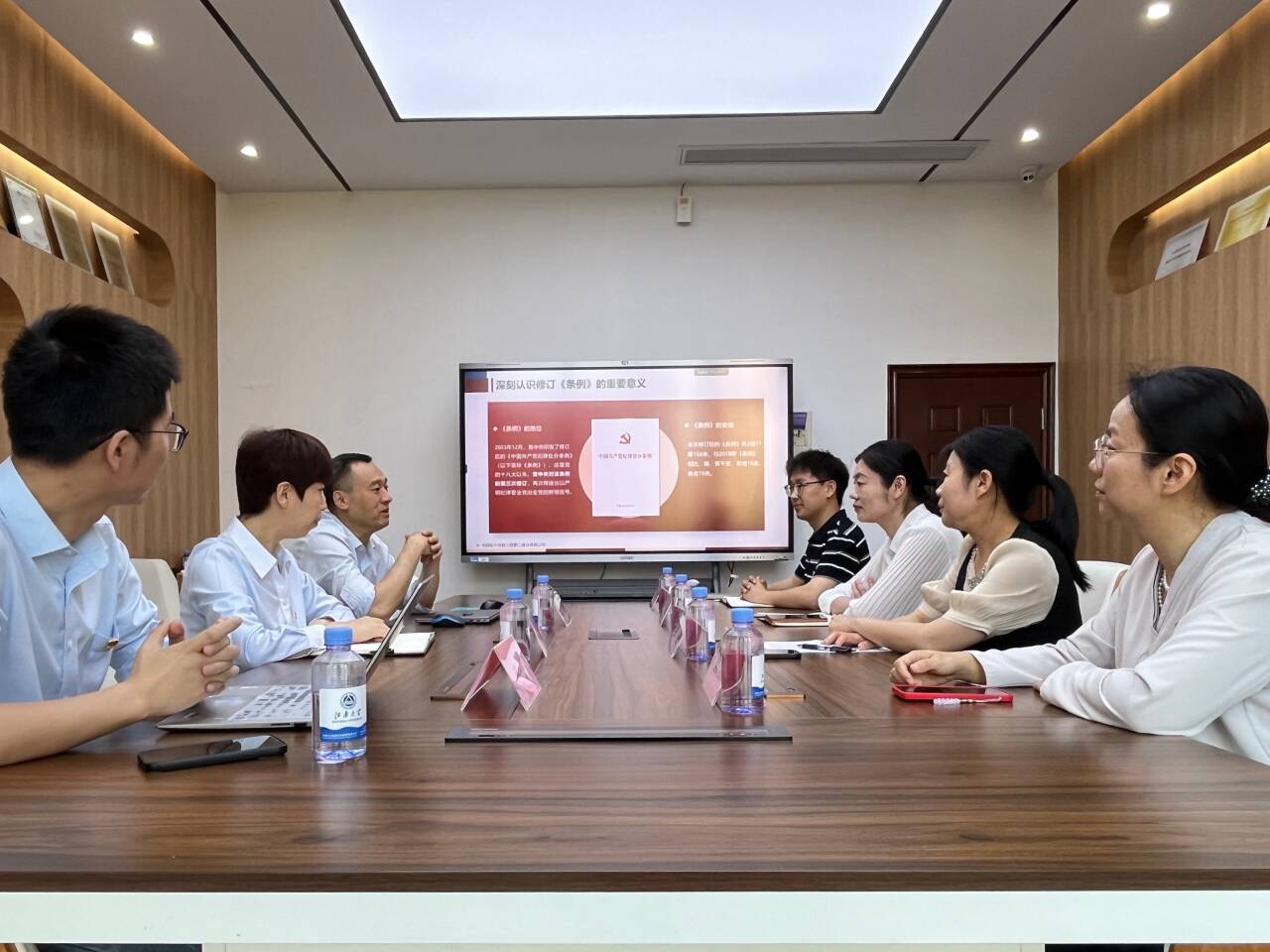 会议伊始,蒋艳首先对中电诚达一行表示热烈欢迎。她围绕学院沿革、师资队伍、教学科研、人才培养、社会服务等方面介绍了学院发展现状和学科特色。她表示,期待双方在党建工作的引领下,在结对共建的过程中,充分发挥各自优势特色,加强人才培养、实习就业、技术研发、信息共享等领域合作,有效促进产学研融合,推动党建业务“双融双促”。耿燕和张世祺分别介绍了教师第一党支部及研究生第一党支部的基本情况、工作机制、特色活动、所获荣誉等。随后,徐广飞介绍了中电诚达的发展背景、主业布局、特色优势、发展规划、企业文化及党支部概况,他表示,希望双方不断加强党建、科研、人才培养等方面的合作交流,多层次全方位拓展合作宽度和共建深度,形成发展创新合力,推动党建工作和业务发展共同进步,不断增强党组织的凝聚力和战斗力。会上,双方还一起学习了《中国共产党纪律处分条例》,深入领会《条例》修订的重要意义,准确把握重点内容,深刻认识到要切实增强政治意识、纪律意识、规矩意识,守好“红线”、守牢“底线”、守住“警戒线”,将铁的纪律真正转化为日常行为准则,推动工作高质量、健康平稳发展。