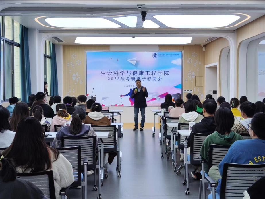 伴随着冬日的脚步,考研初试的日期渐进,为鼓励考研学子做好临考冲刺,11月24日下午,在距离考研30天之际,生命科学与健康工程学院开展2023届考研学子慰问活动,院党委书记陈霞雯、院长陈敬华、副院长李会、党委副书记兼副院长蒋艳、制药1901班主任李瑞怡、制药1902班主任任学敏出席本次活动,活动由王珏老师主持。