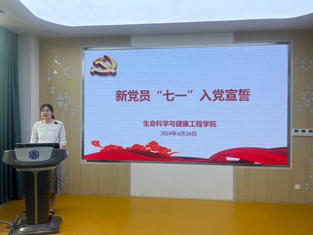 在中国共产党成立103周年之际,生命科学与健康工程学院于6月24日在学院306会议室隆重举行新党员“七一”入党宣誓暨毕业生党员离校教育。此次大会旨在进一步强化党员意识,坚定理想信念,激发党员的使命感和责任感,以实际行动践行党的宗旨和纪律。学院党委书记史志洪,党委副书记兼副院长蒋艳,辅导员以及新党员、毕业生党员代表参加了本次大会。活动由蒋艳主持。